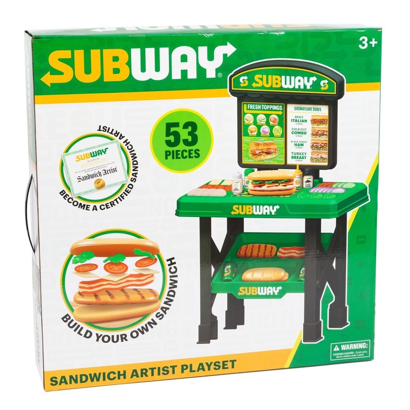 Make sandwiches from your favorite fast-food restaurant with the Subway Sandwich Artist 53 Piece Playset. Great for imaginative play, this incredible playset comes with bread, meat, veggies, and cheese play pieces to build your perfect Subway sandwich. Complete the transaction with play money just like in real life! Make it official with your very own Subway Sandwich Artist certificate. Get the Subway Sandwich Artist 53 Piece Playset today!