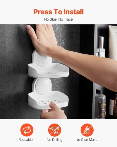 This wall-mounted soap box features vacuum suction technology, offering a drill-free, mark-free installation. Its double-layer design provides extra storage space, while the unique drainage system keeps your soap dry. It is fully disassemblable for easy cleaning and supports up to 5 kg weight.