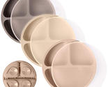 Suction Plates with Lids for Babies Toddlers - 100% Silicone, Dinnerware Stays Put, Divided Design for Picky Eaters, Microwave Dishwasher Friendly, 3 Pack