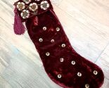 - Sudha Beaded Christmas Stocking Red Gold crushed Velvet Tassels floral sequins