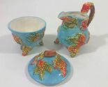 Primary image for Sugar Bowl with Lid and Creamer Set Blue and Orange Green Leaves Design