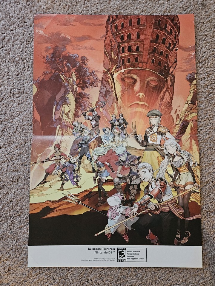 This is a 15.5''x11.5'' two sided poster featuring Suikoden: Tierkreis/Tomb Raider Underworld. It has a small crease in the middle from being in a magazine. It is in good, unused condition.