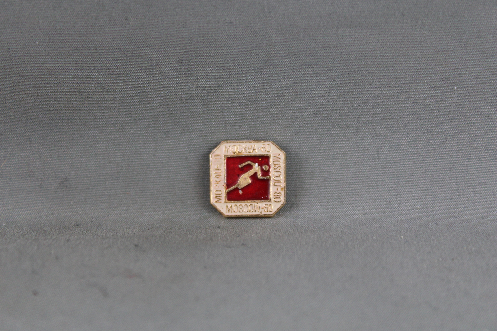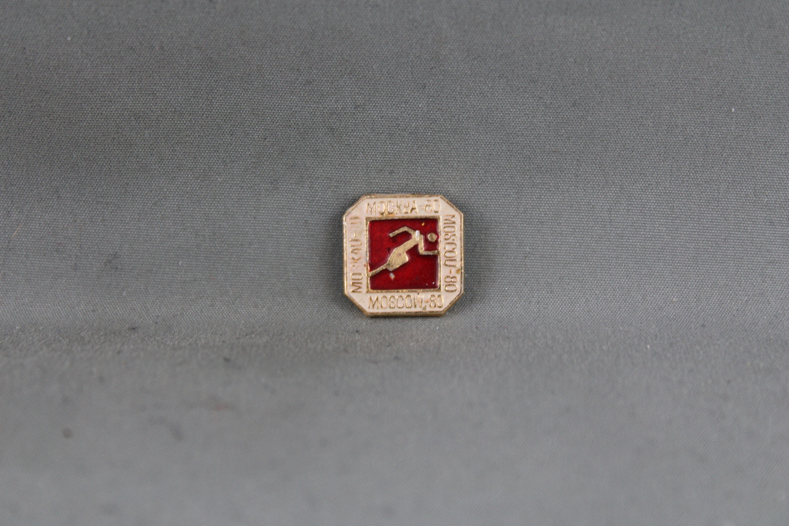 Up for sale is a vintage Summer Olympic Games pin. It has a white outer frame with Moscow 80 stamped on each side. The middle of the pin has an image of a sprinter stamped in on a red background. What a great addition to any collection.