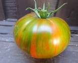 This variety was developed by Brad Gates of Wild Boar Farms. He describes it as an improved strain of Berkeley Tie Dye and I found it to be slightly smaller, but earlier and more reliable and prolific. It certainly is a striking tomato with a beautiful interior. The flavor is tangy sweet.