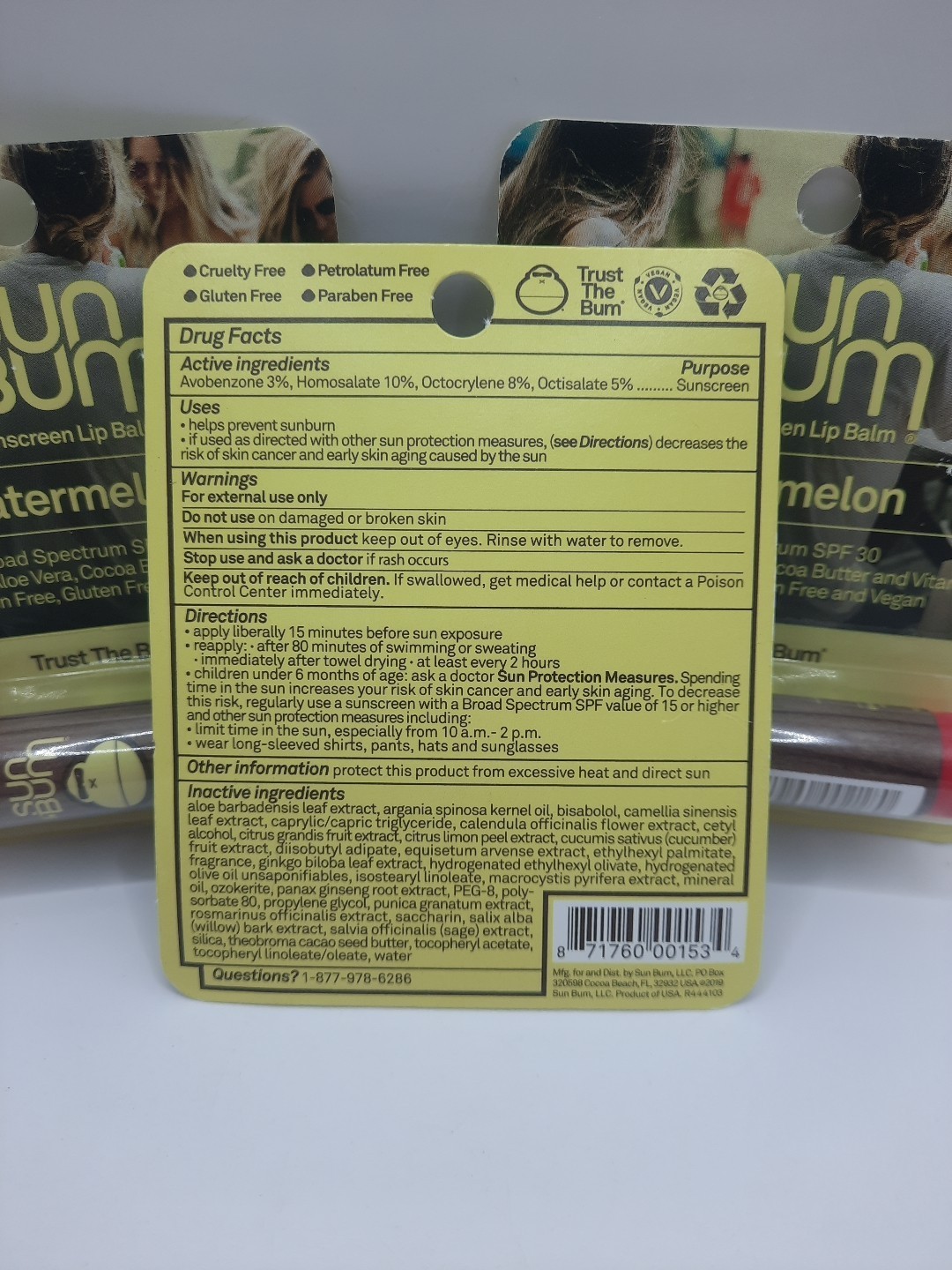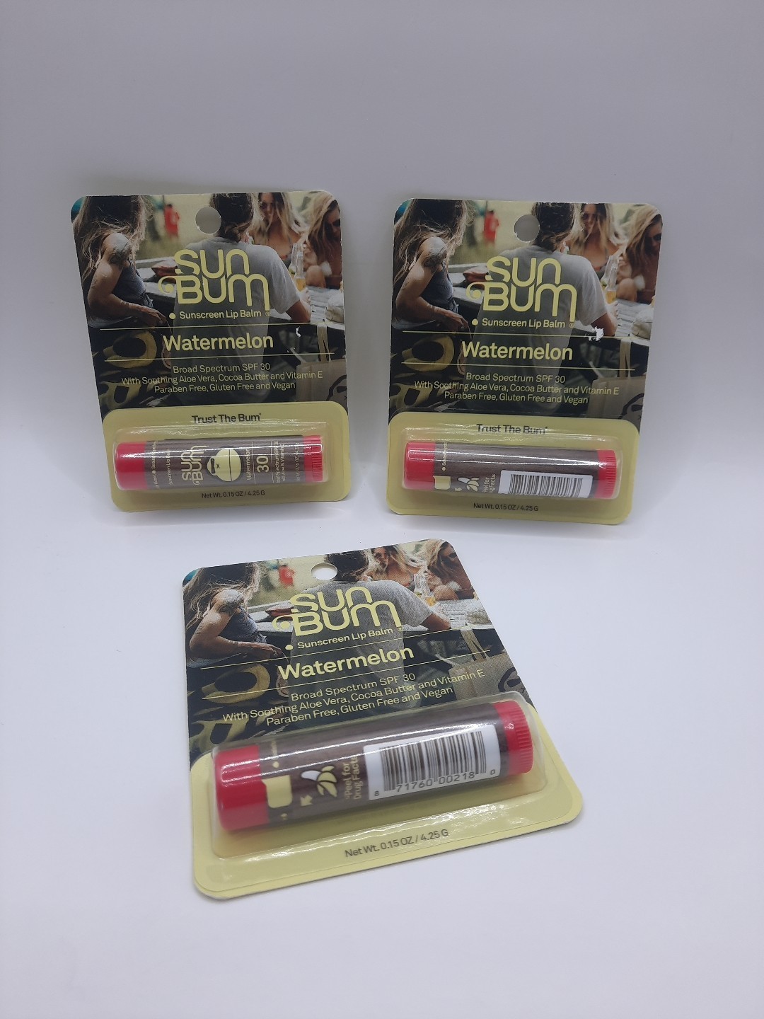 - SUN BUM SPF 30 Sunscreen Lip Balm Watermelon 05/2026 ☆LOT OF THREE☆