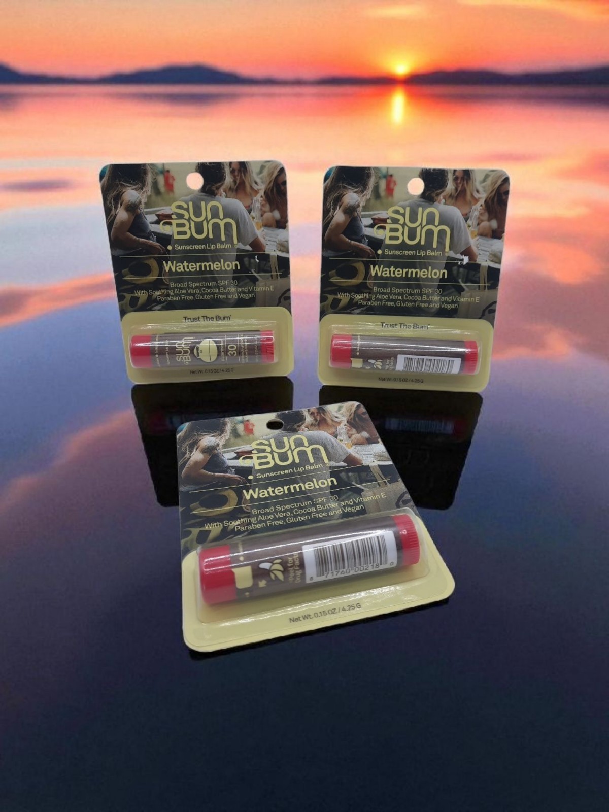 SUN BUM SPF 30 Sunscreen Lip Balm Watermelon 05/2026 ?LOT OF THREE?.