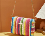 - Sun-Kissed Charm: Women's Straw Beach Bag with Small Chain, Summer Crossbody Pur