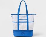 Pack up and head out with this Beach Tote Bag with Zipper Bottom Tan Stripe / Navy - Sun Squad?. It?s roomy enough for your beach day essentials and features a handy zipper bottom to store wet items or sandy gear separately. The sturdy handles make it easy to carry and the classic design fits right in with sunny days and ocean breezes. A simple, no-fuss tote for beach, pool or weekend trips. Sun Squad?: Ready for fun.