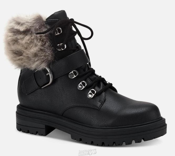 - Sun + Stone Mens' Orlenaa Combat & Lace-Up Boots Shoes Black Small Fur