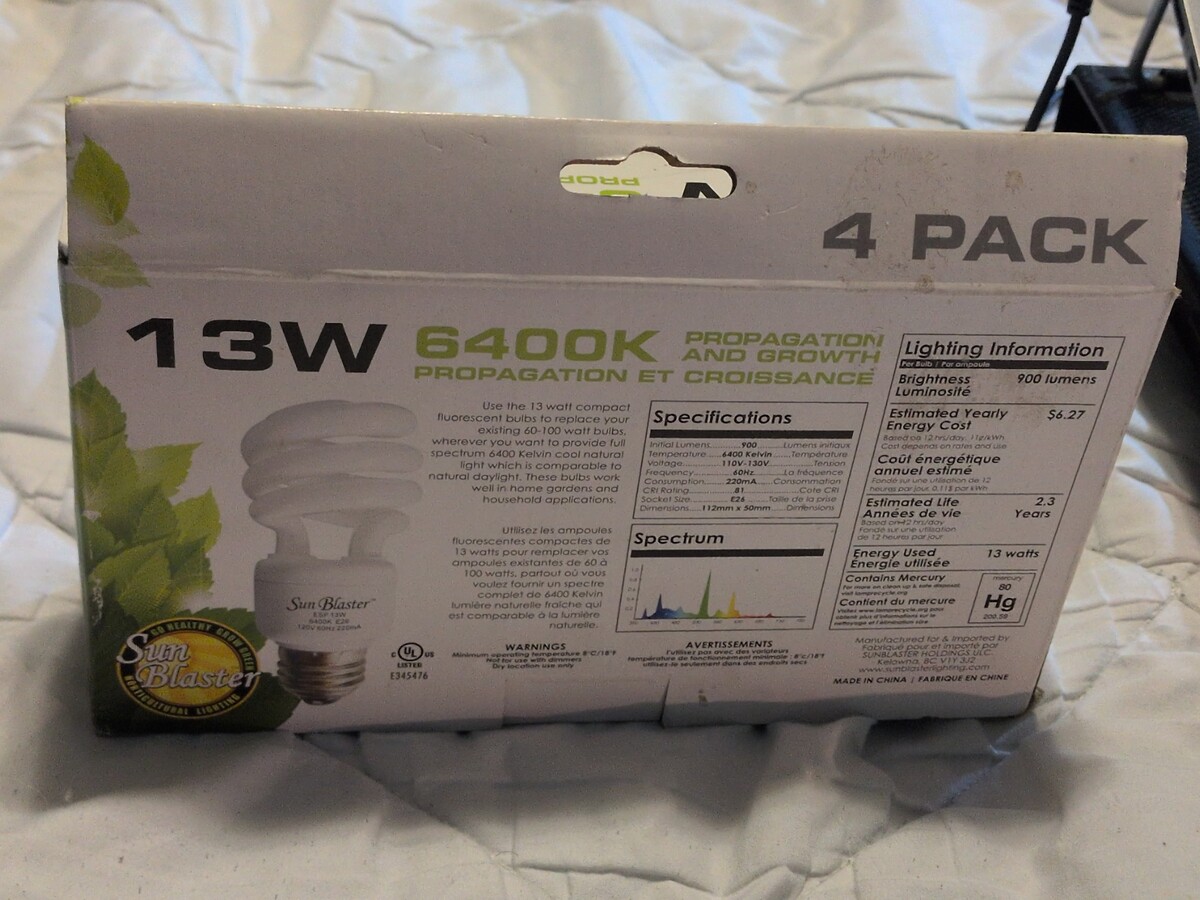 - SunBlaster 13W 6400k Propagation & Growth Light Bulbs 4 Pack