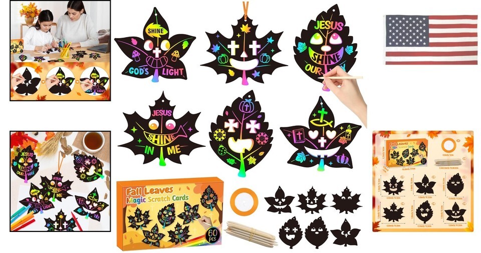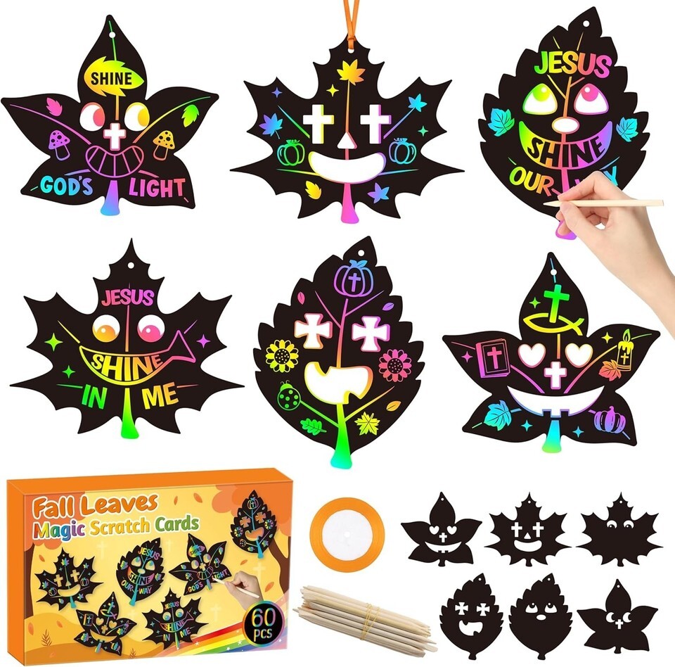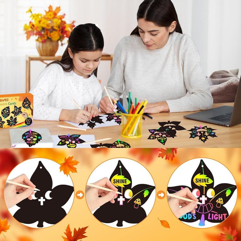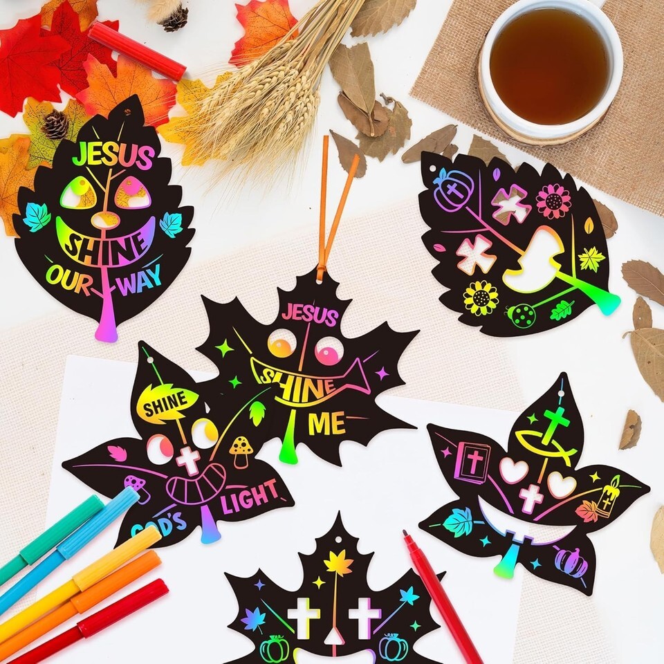 - Sunday School Crafts for Kids Fall Maple Leaves Scratch Art Kit Christian Tha...