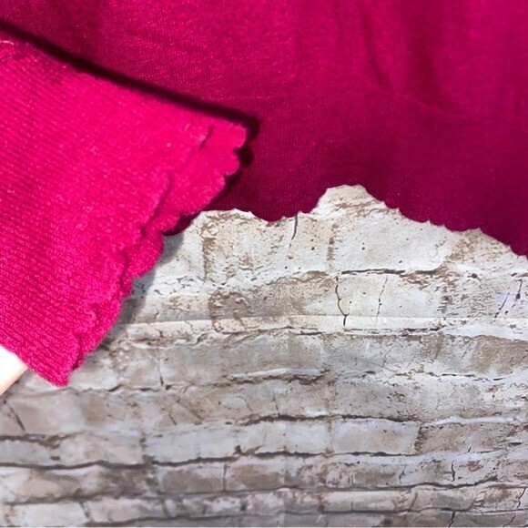 Sundry Cashmere Blend Stripes Heart Sweater in Berry Size Medium 8-10 / 70 Wool 30 Cashmere : stripe detail on sleeve with heart on 1 sleeve cuff / scalloped hem and sleeve cuffs/ thin and lightweight