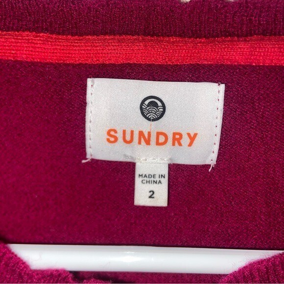 - Sundry Cashmere Blend Stripes & Heart Sweater in Berry Size Medium *READ