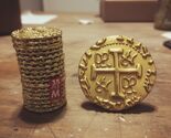 35 shiny metal doubloons in each set, measuring 7/8 inches (22.24 mm) in diameter