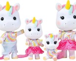 The toy set includes 4 miniature flocked unicorn figures: 2 parents and 2 kids