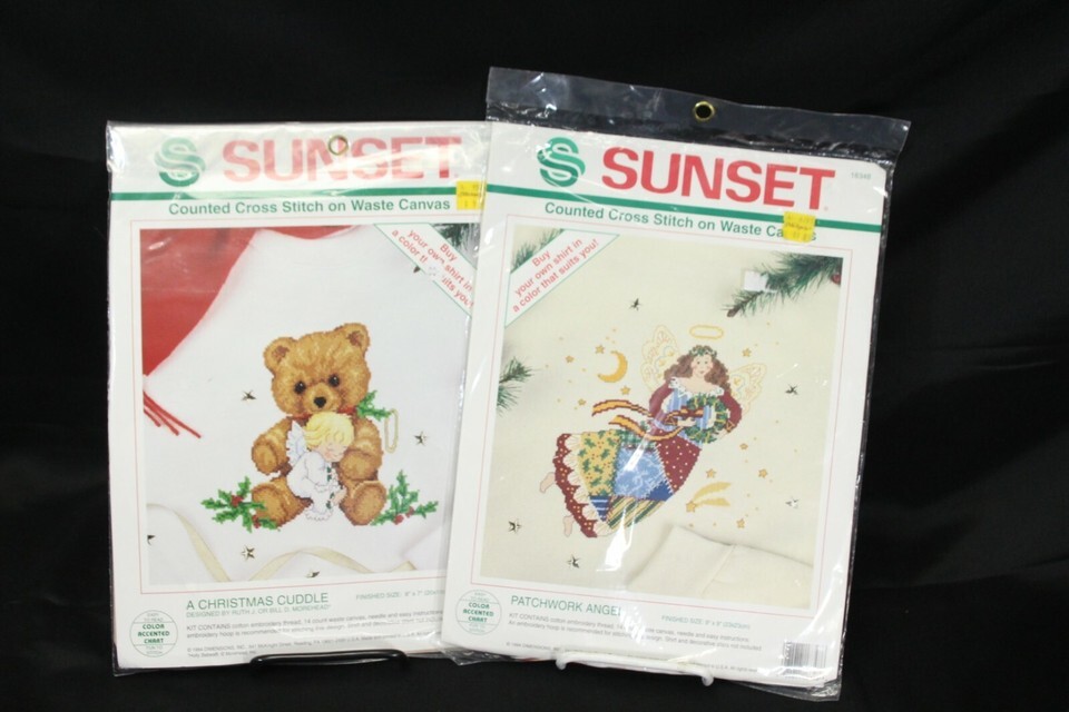 - Sunset Counted Cross Stitch on Waste Canvas Christmas Lot of 2 Xmas