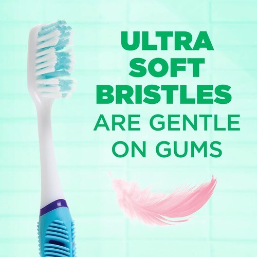 * ULTRA-SOFT BRISTLES: The toothbrush head features bristles with an ultra-soft texture that are gentle but effective at cleaning dental plaque and food particles without irritating sensitive teeth and gums.