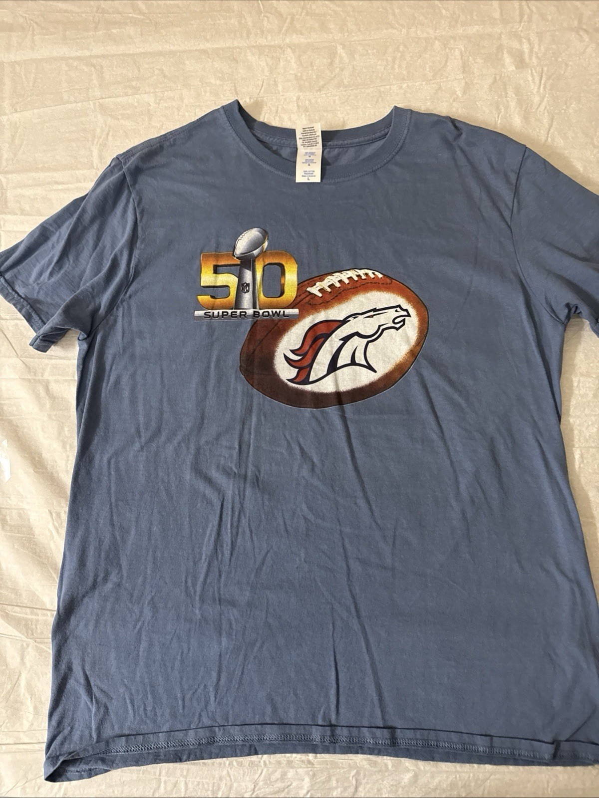 - Super Bowl 50 NFL Football T Shirt Blue Size Men’s Size L Short Sleeve Shirt