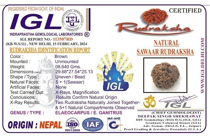 Allegato: Rapporto di test di laboratorio quale autenticita dell'originalita di Proof e spedita anche con questo Rudraksha