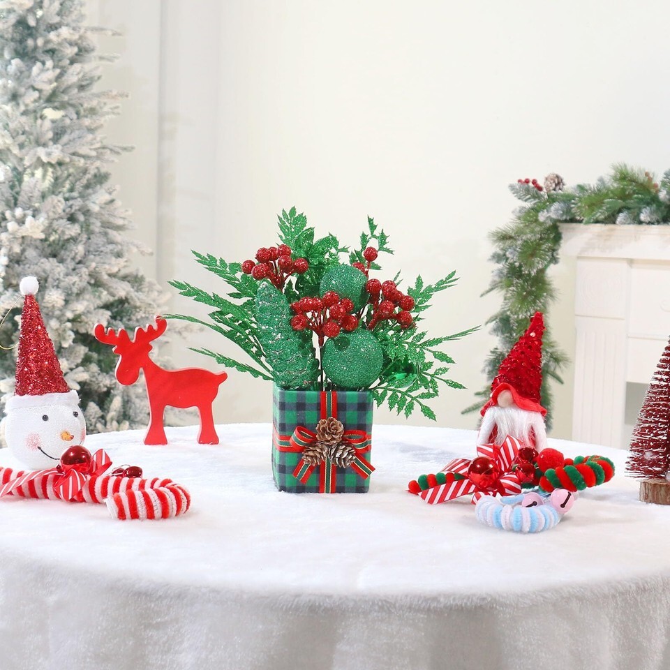 SMALL CHRISTMAS TREE: This artificial mini desktop Christmas tree features a fashionable Green and Black buffalo grid pattern design, as well as exquisite Christmas decorations, making it immediately eye-catching whether placed in a corner of the living room or on the desk in the office, becoming a highlight of the festive atmosphere.