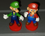 The product is a set of replacement chess pieces featuring Mario and Luigi from the Super Mario franchise. The pieces are designed as cake toppers and represent the King and Queen in a chess game. Made of plastic, these colorful pieces are from a Nintendo-themed chess set released in 2009, suitable for children aged 3-4 years. The pieces add a fun and playful element to a chess game, making it engaging for younger players while incorporating familiar characters from the popular Mario series.