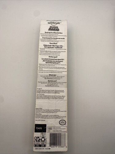 Super Mario Kids Spinbrush Electric Toothbrush Multi Color Soft Bristles. May contain shelf ware