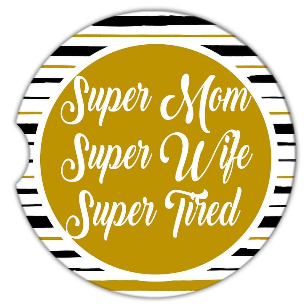 - Super Mom Super Wife Super Tired : Gift Coaster Mother Day Stripes Birthday