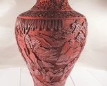 Superbe Ancien Grand Cinabre Sculpté Étui 16 " Riche Couleur