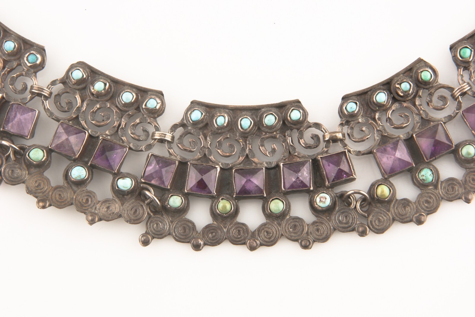 Superbe Mexico MR-39 Silver Amethyst turquoise Collier et bracelet