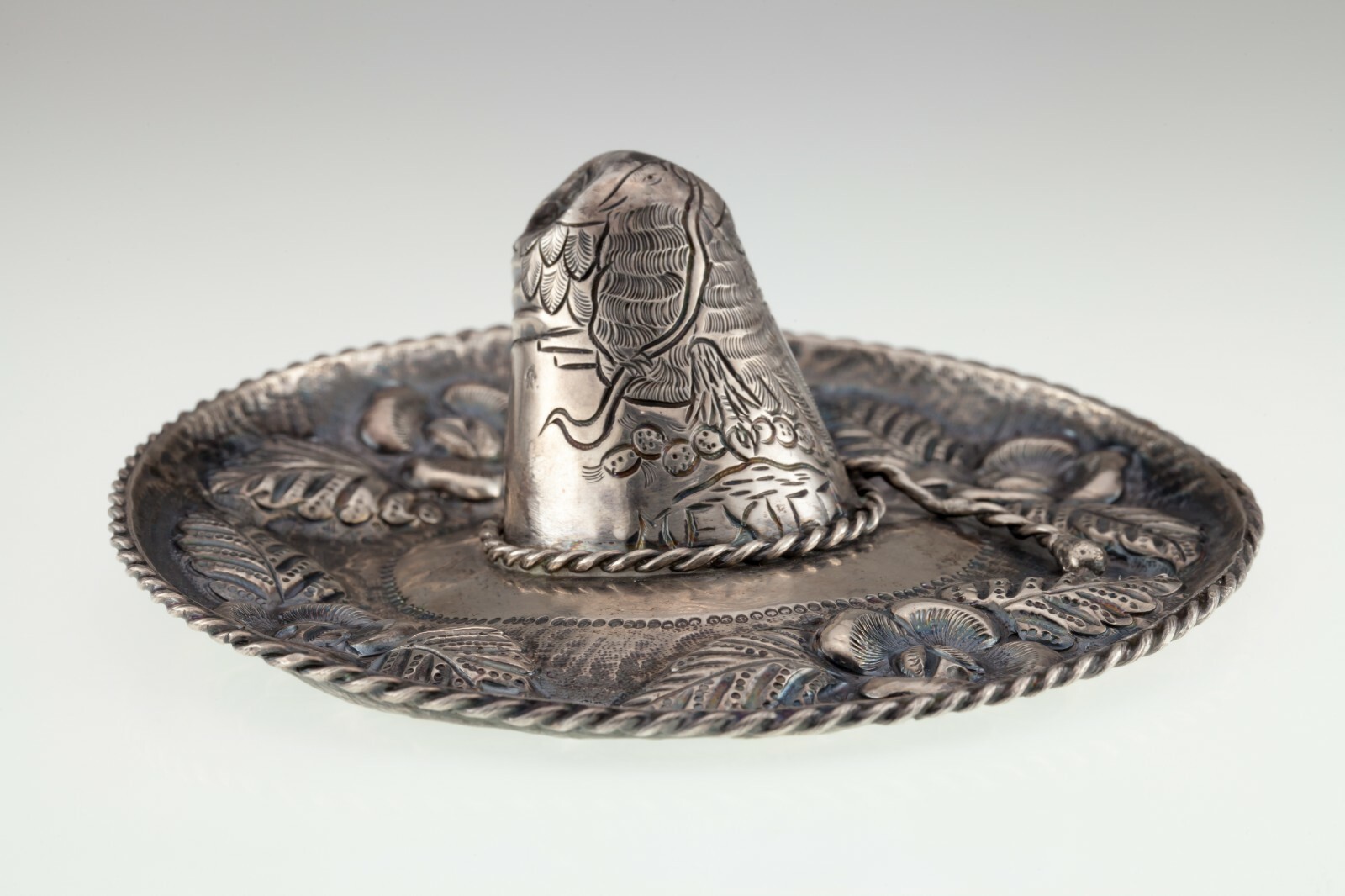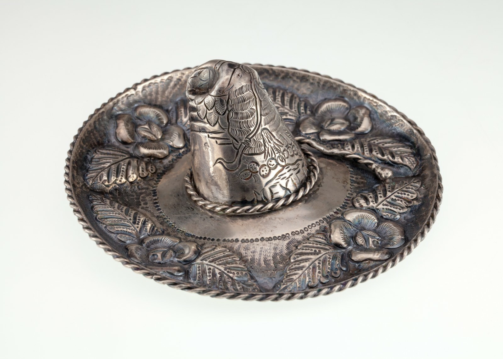 - Superbe Repousse Floral Sombrero Figurine En Argent Sterling 4.25 ", 74.7g