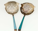 Magnifique email en argent sterling perce Bon Bon des cuilleres de service en bleu clair et sarcelle