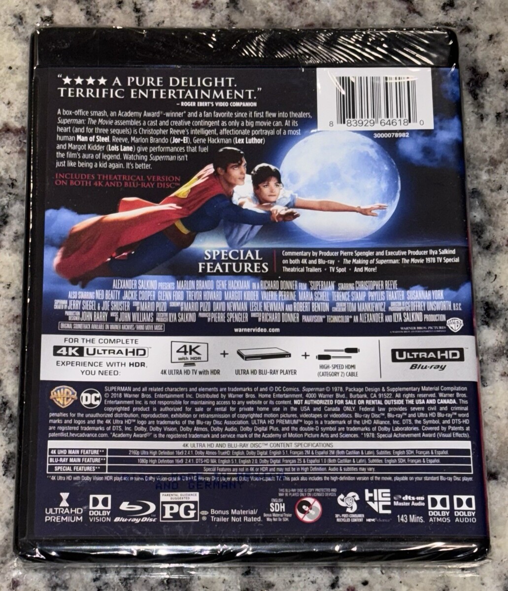 - Superman 4K Ultra HD/ Blu Ray 1978 With Slipcover New Sealed