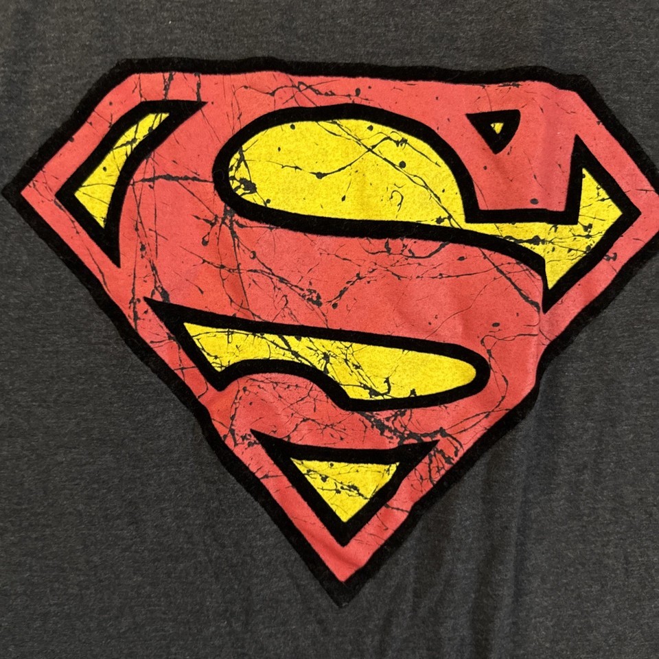 - Superman Men's T-Shirt Distressed Superman Graphic Logo Dark Gray 3XLT