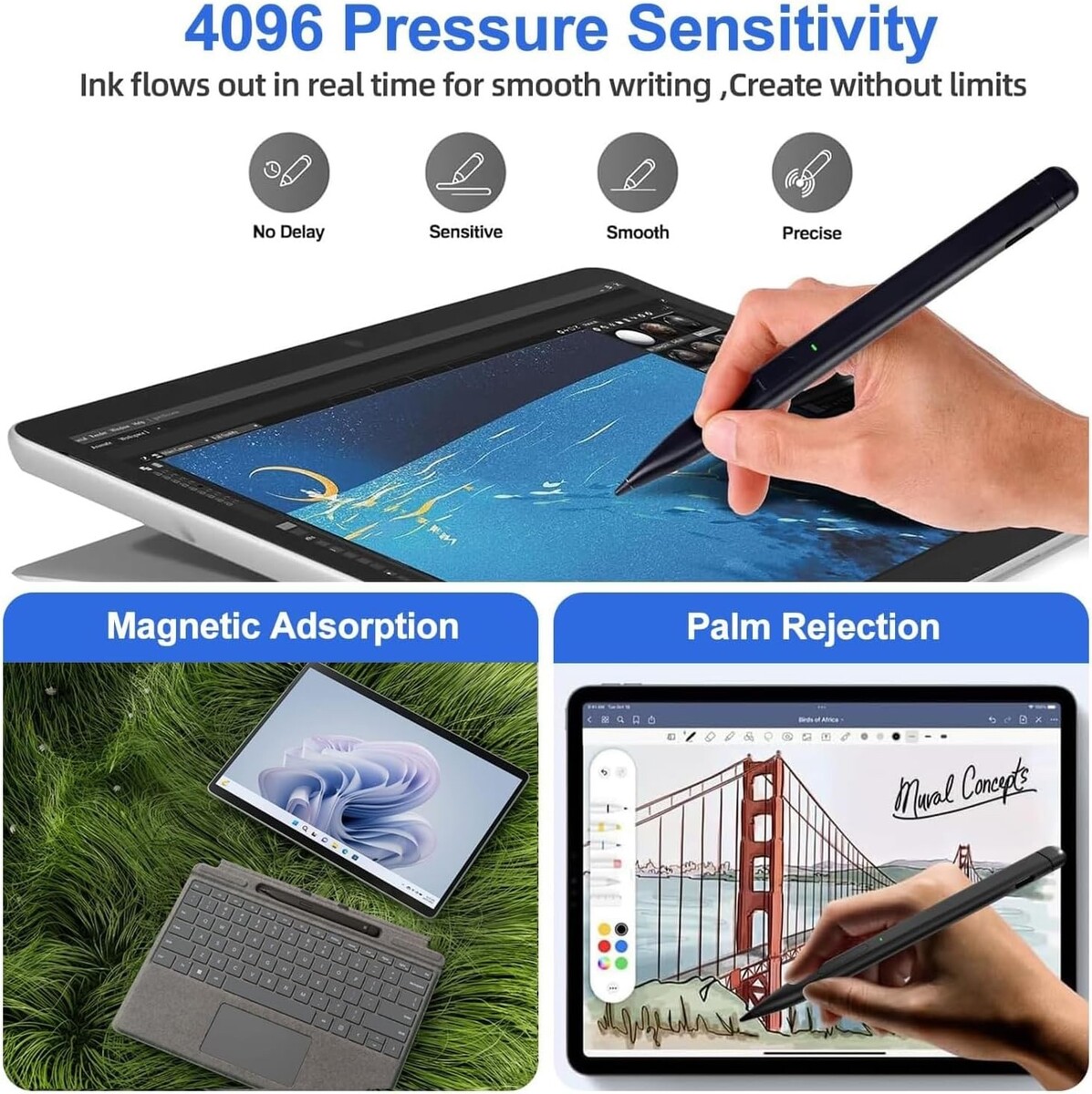 Compatibility : Specifically designed for Microsoft Surface Pro 11(2024), Surface Pro 10(2024), Surface Pro 9(2022), Surface Pro 8?2021) and Surface Pro X (1st/2nd/3rd generation) 13 inch tablet, this surface pro 11 / 10 / 9 / 8 / x bluetooth keybaord with a large trackpad for precise navigation and control, 7 colors backlit for your choice, compact layout and quiet typing function, optimum key spacing for fast and accurate typing.All-new Jvkzaen surface slim pen features a thin, light profile. It stores securely in the built-in storage tray of surface Pro1110 9 8 X keyboard.Please note that the pen holder is for storage only, not for charging.