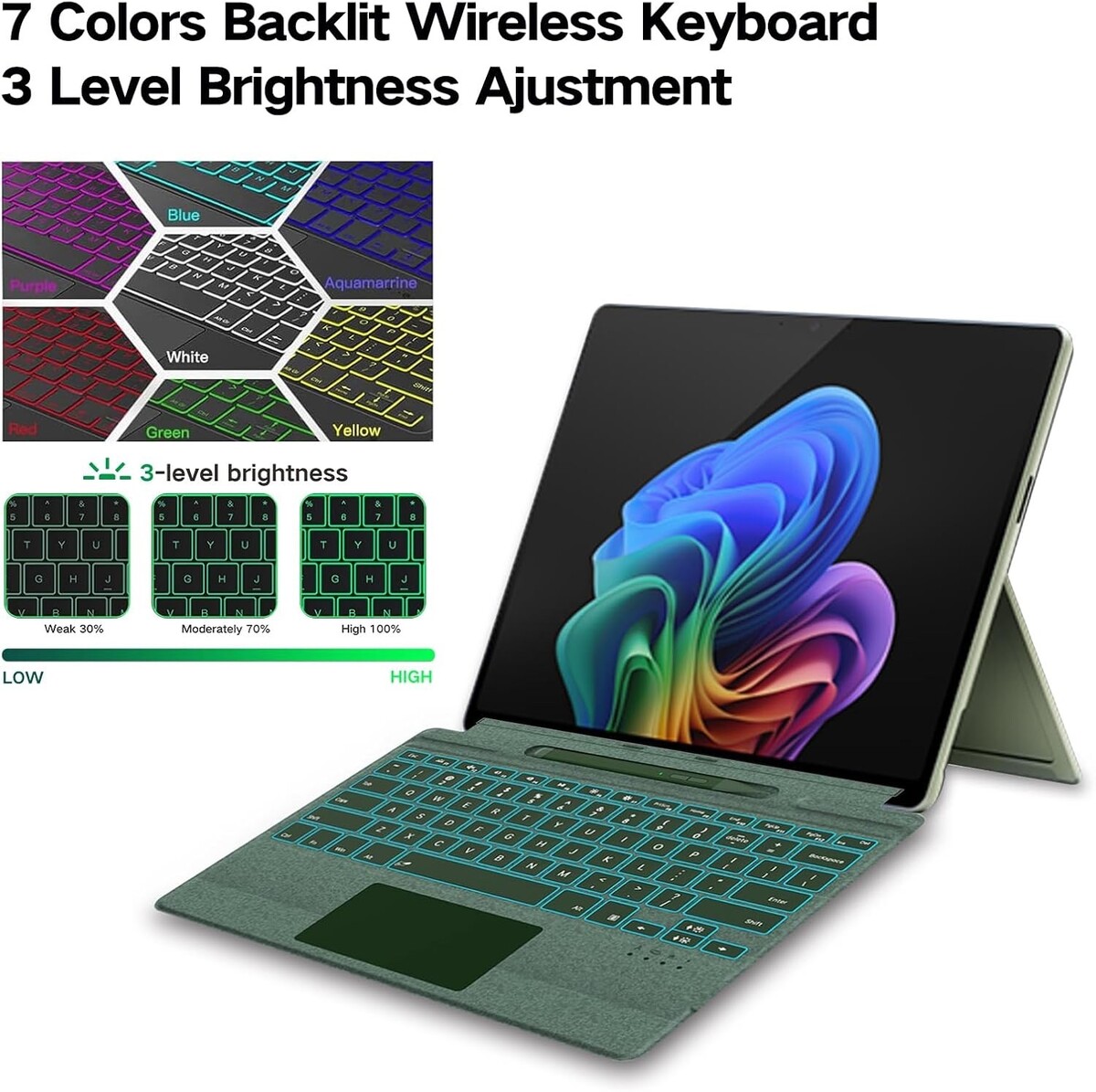 Surface Pro 9 Keyboard with Slim Pen, Compatible with Microsoft Surface Pro 11 10 9 8 X, 13 Inch Bluetooth Wireless Backlit Type Cover with Slim Pen,Keyboard with Slim Pen,Green