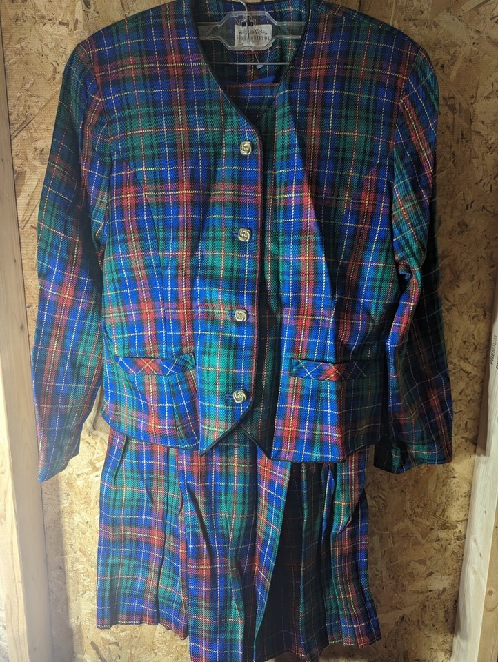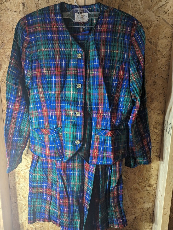 - Susan Bristol size 8 plaid 100% rayon skirt suit
