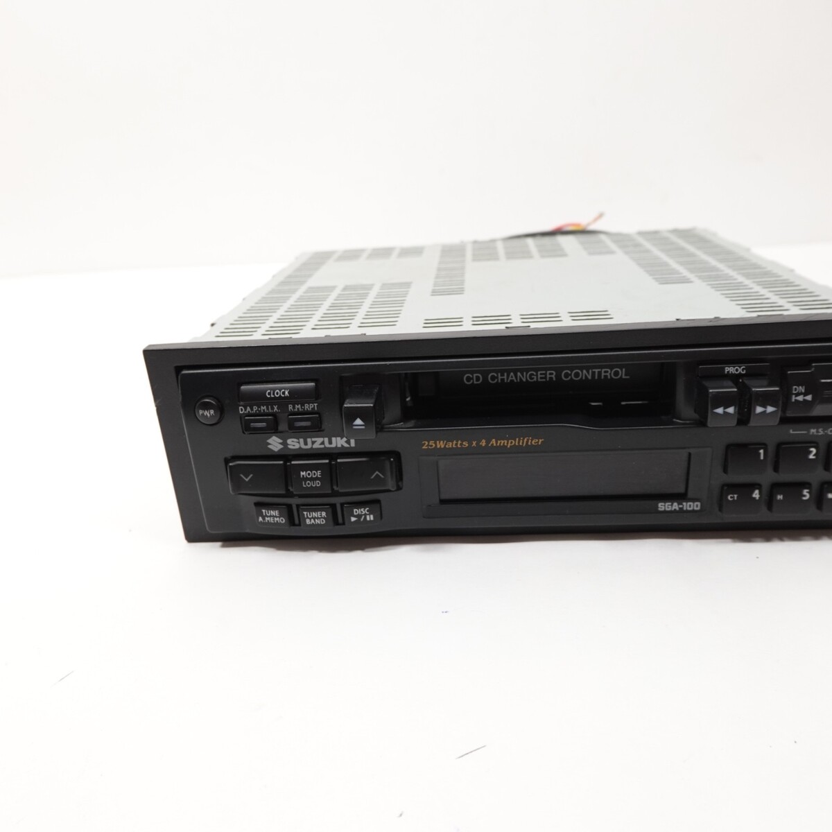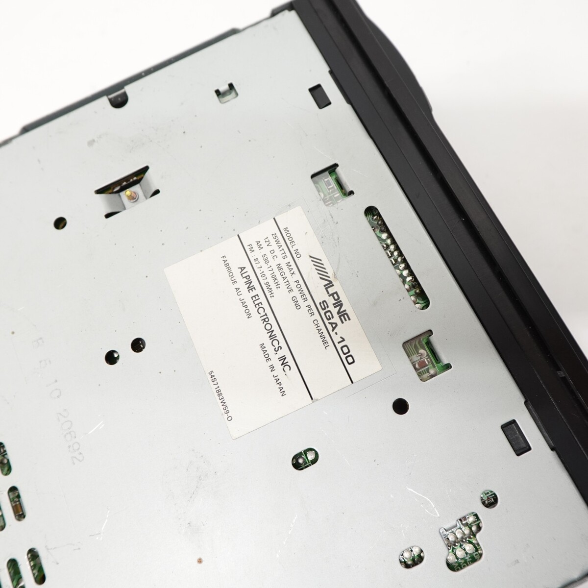 ested Suzuki / Alpine SGA-100 car stereo head unit. Vintage OEM-style deck, made in Japan by Alpine Electronics. Great for restoration projects or collectors of early 1990s Suzuki and Alpine audio systems.