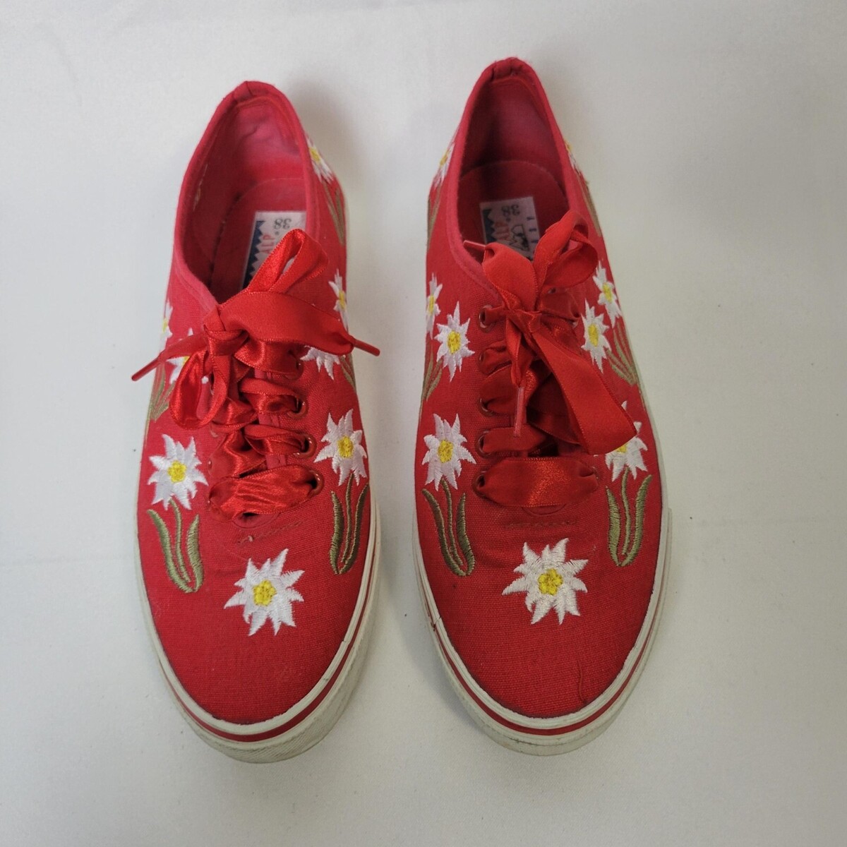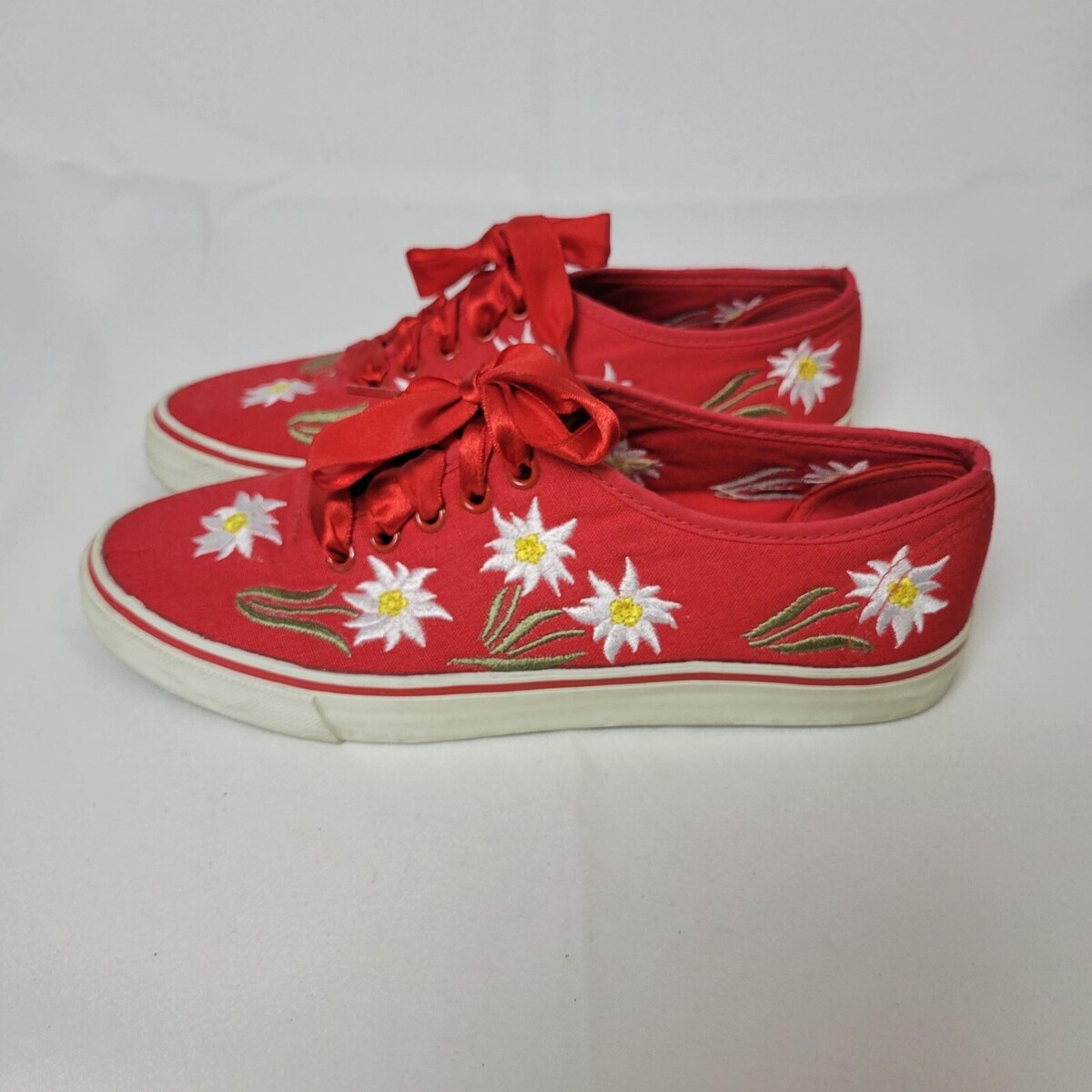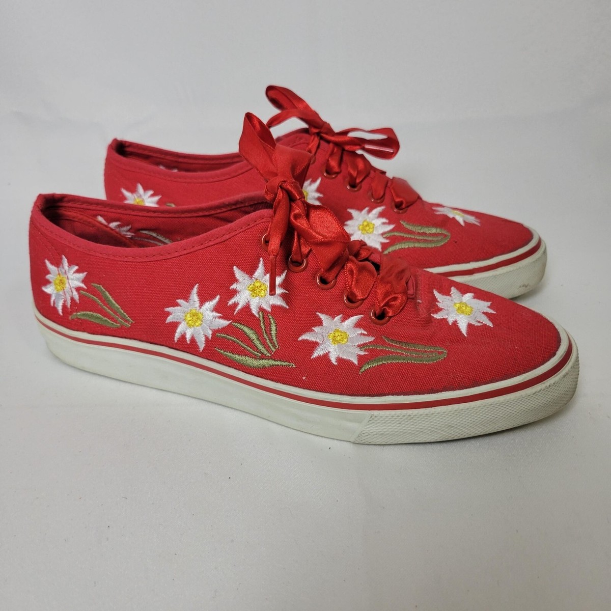 - Swiss Alp Fantasy Women's Sneaker Size 38 Red Floral Embroidered Canvas Shoe
