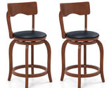 Swivel Bar Stools Set of 2 with Rubber Wood Frame and Upholstered Seat-24 Inch - Color: Black Brown - Size: 24 inches