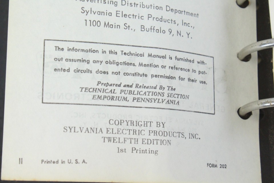 - Sylvania Technical Manual General Telephone Electronic Tubes 1st Printing 1960's