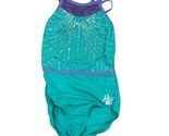 - Sylvia P Aly XS Adult Teal & Purple Strappy Back Gymnastics Leotard With Sequins