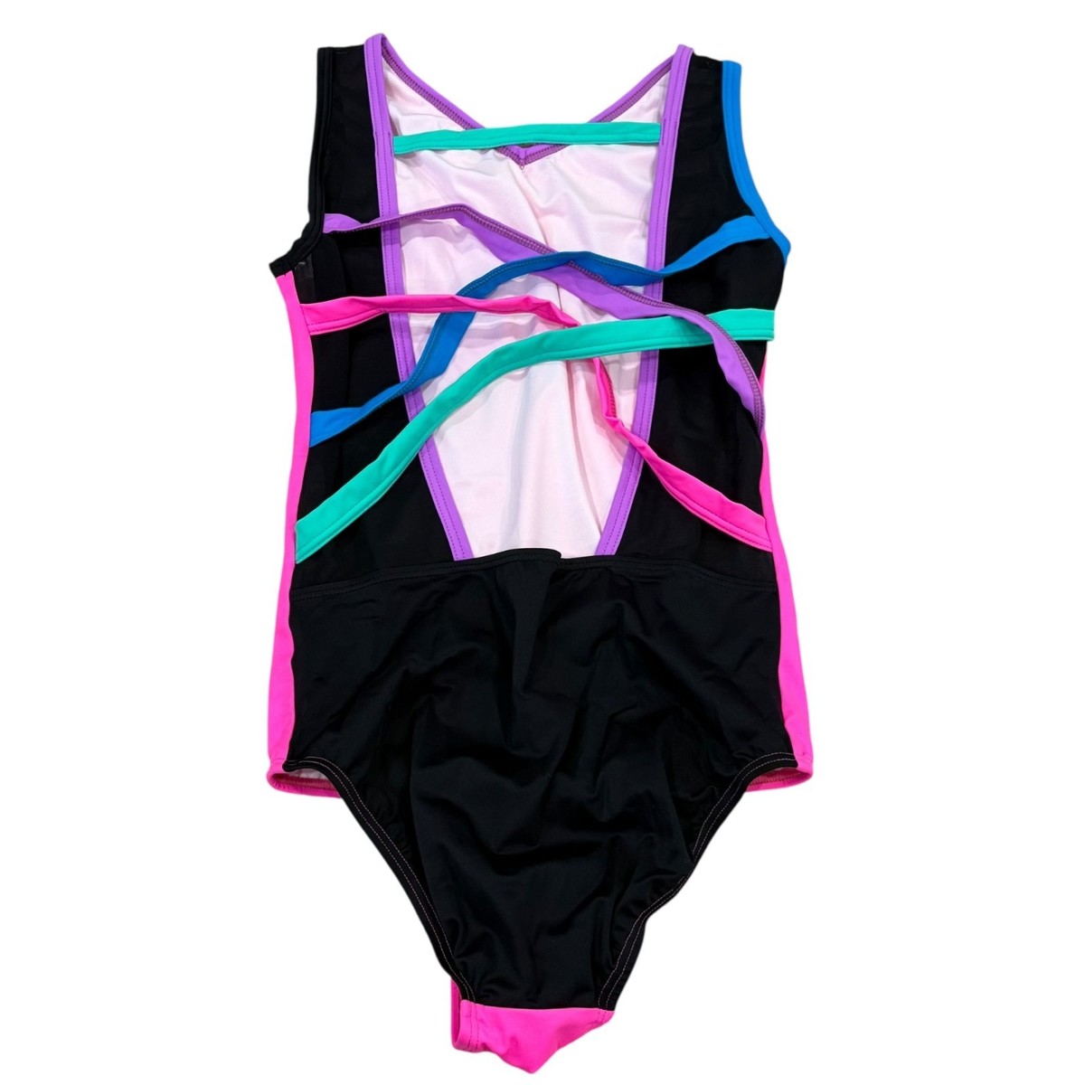 - Sylvia P "Festival" Leotard Adult XS Pink Black Multi Color Gymnastics NWT