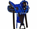 Looking for a saddle that is easy to maintain, light weight, and budget friendly? This blue color synthetic saddle with colored crystals and accents is perfect for those that are looking for a great, lightweight trail saddle! This saddle features bright colored crystal trim along the skirting and cantle that accents the padded colored ostrich seat and horn. The saddle has colored nylon binding that ensure the saddle stays tear proof and is easy to clean.