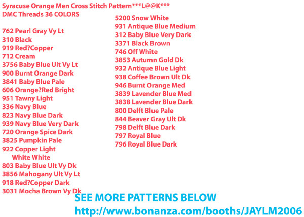 Syracuse Orange Men Cross Stitch Pattern ***LOOK***