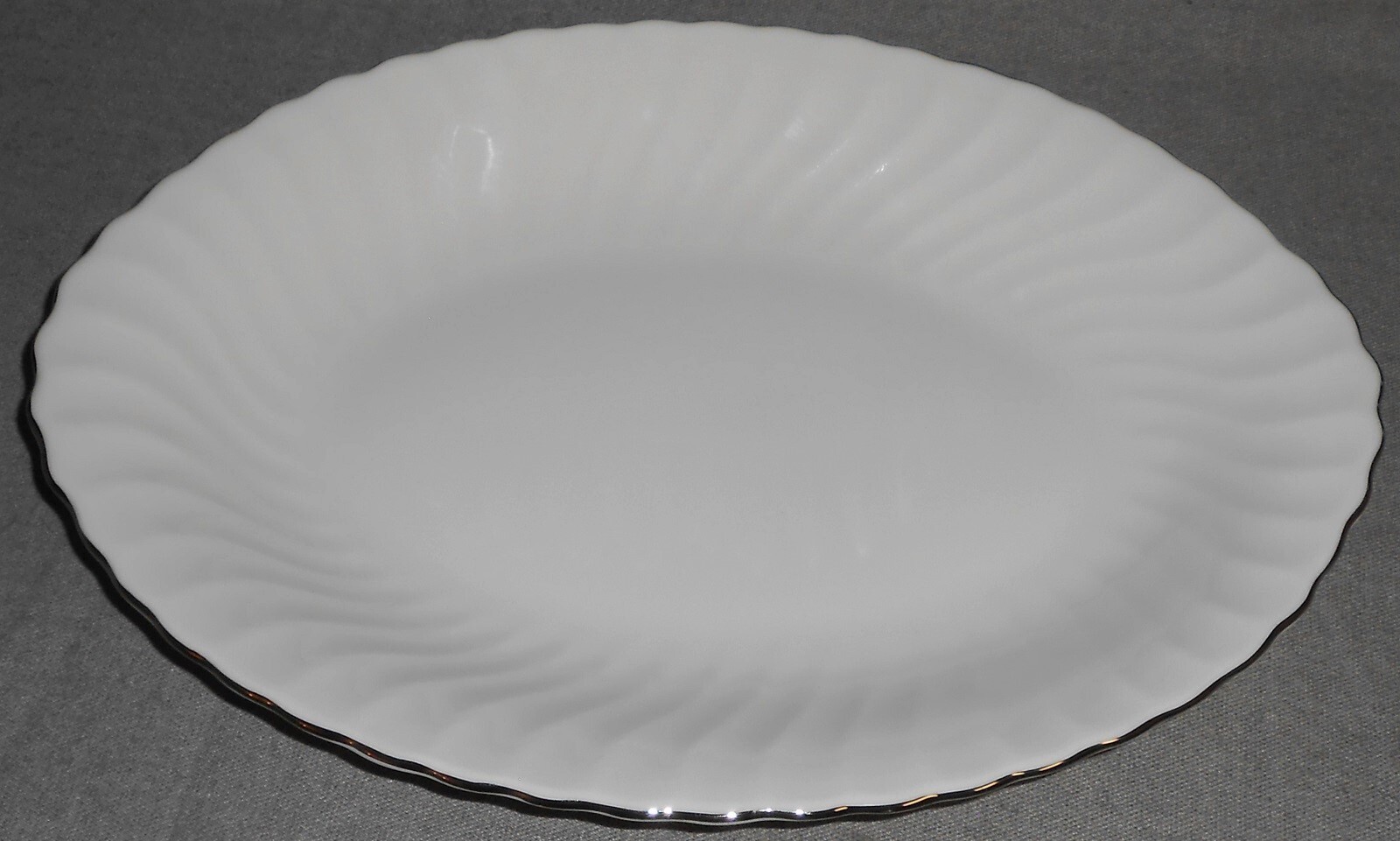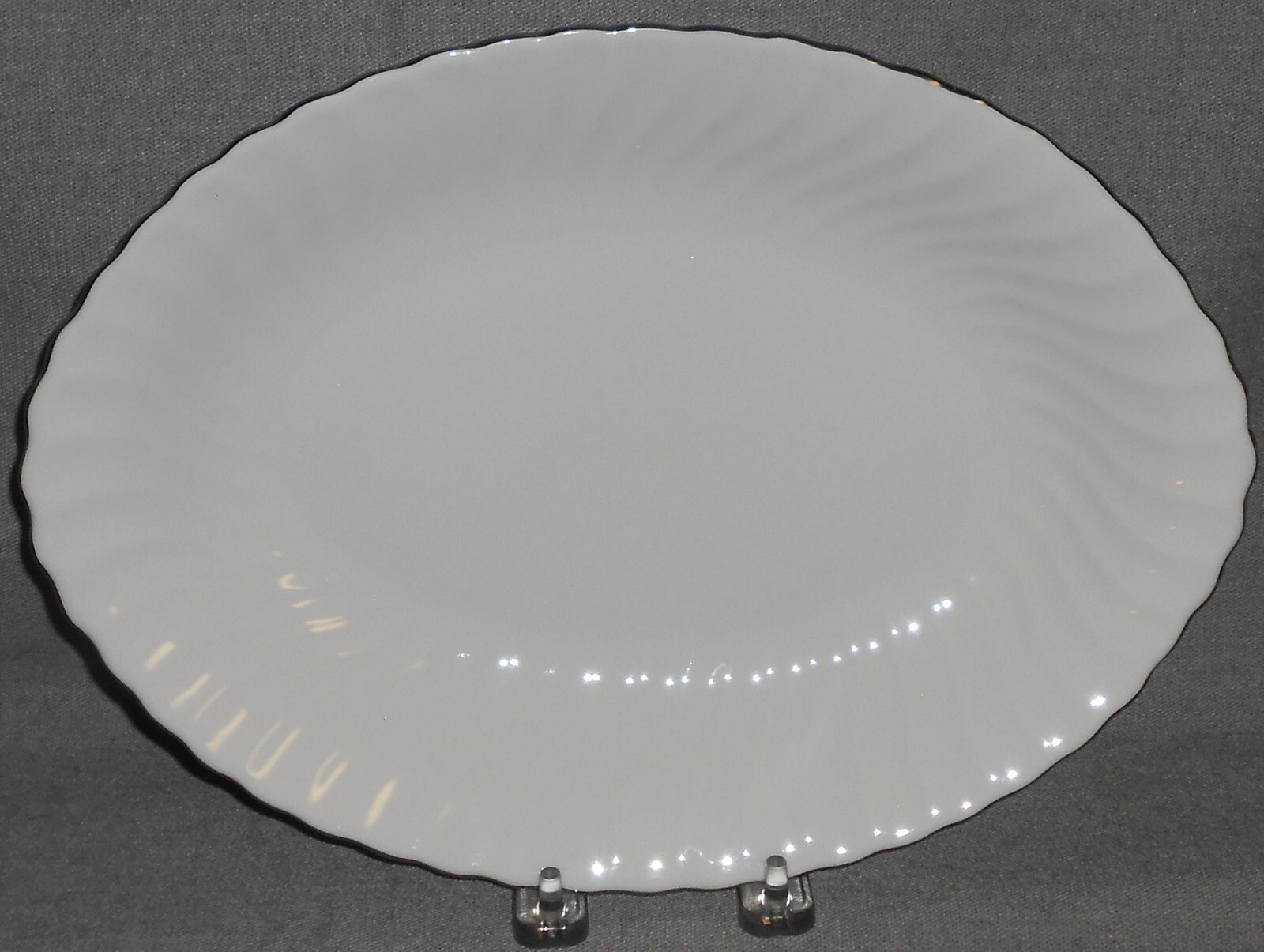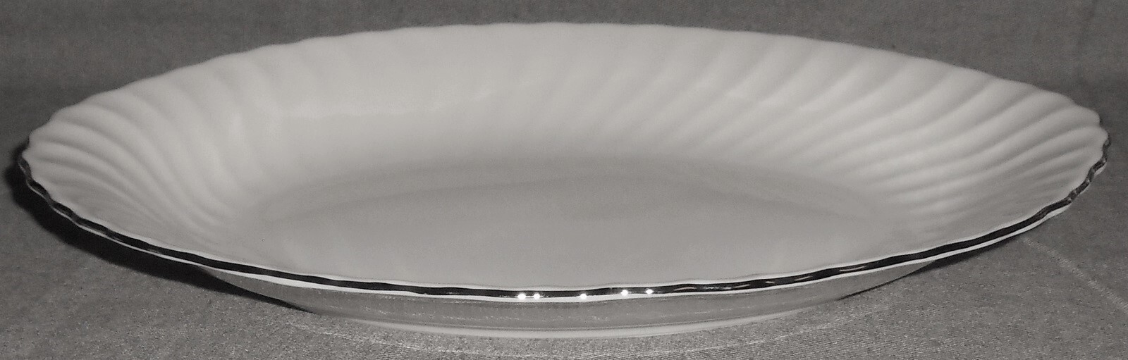 This is the 12" Oval Serving Platter from Syracuse in the Silhouette Fine China Line and Wedding Ring Pattern - Made in the USA. It is in good pre-owned condition with no chips or damage.