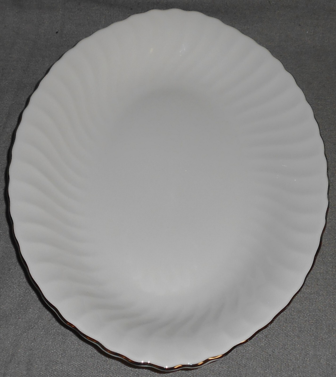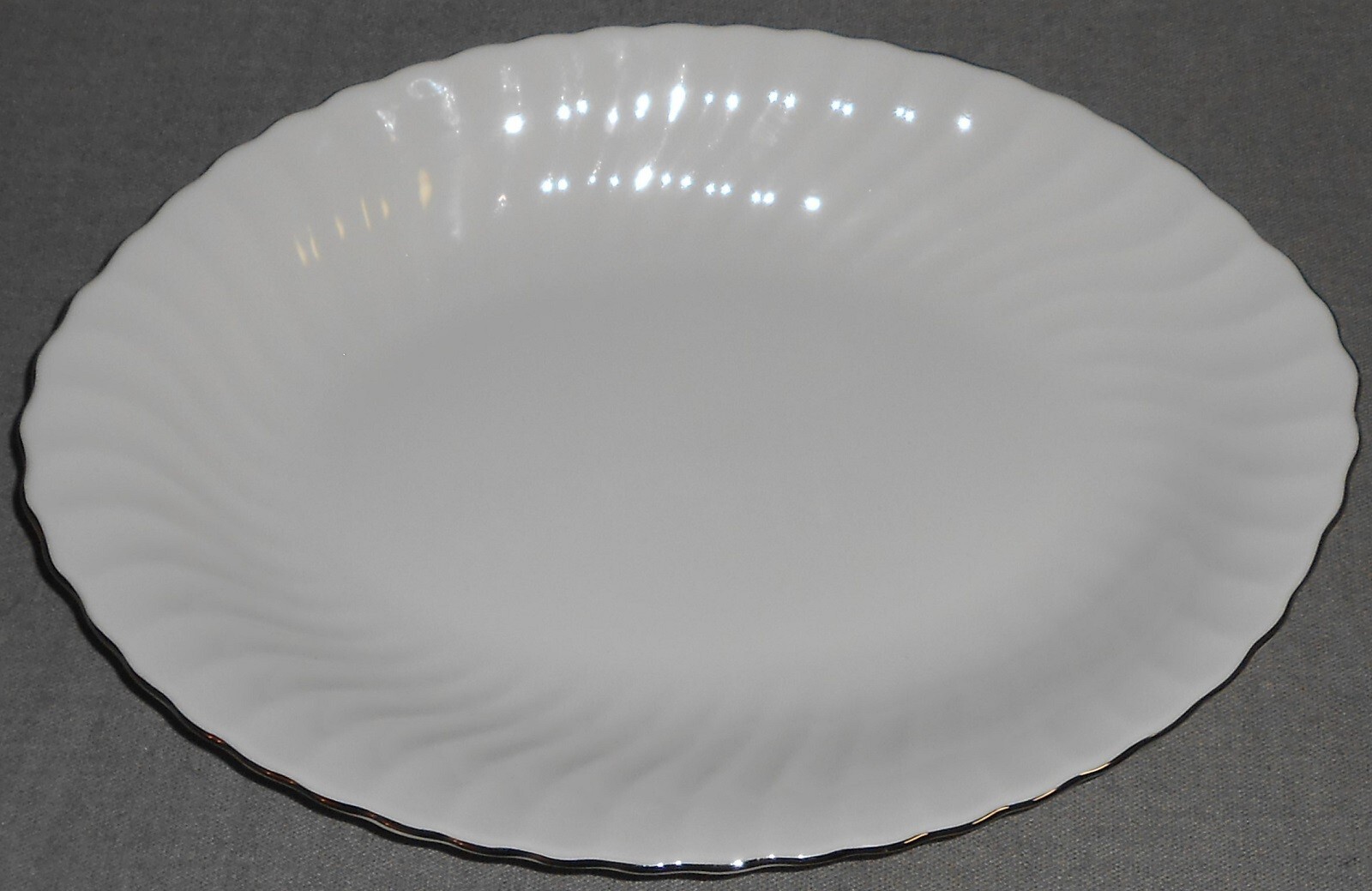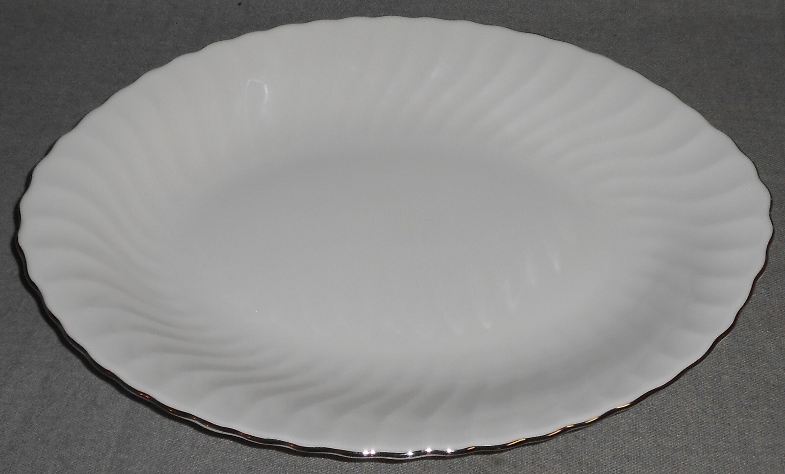 This is the 12" Oval Serving Platter from Syracuse in the Silhouette Fine China Line and Wedding Ring Pattern - Made in the USA. It is in good pre-owned condition with no chips or damage.