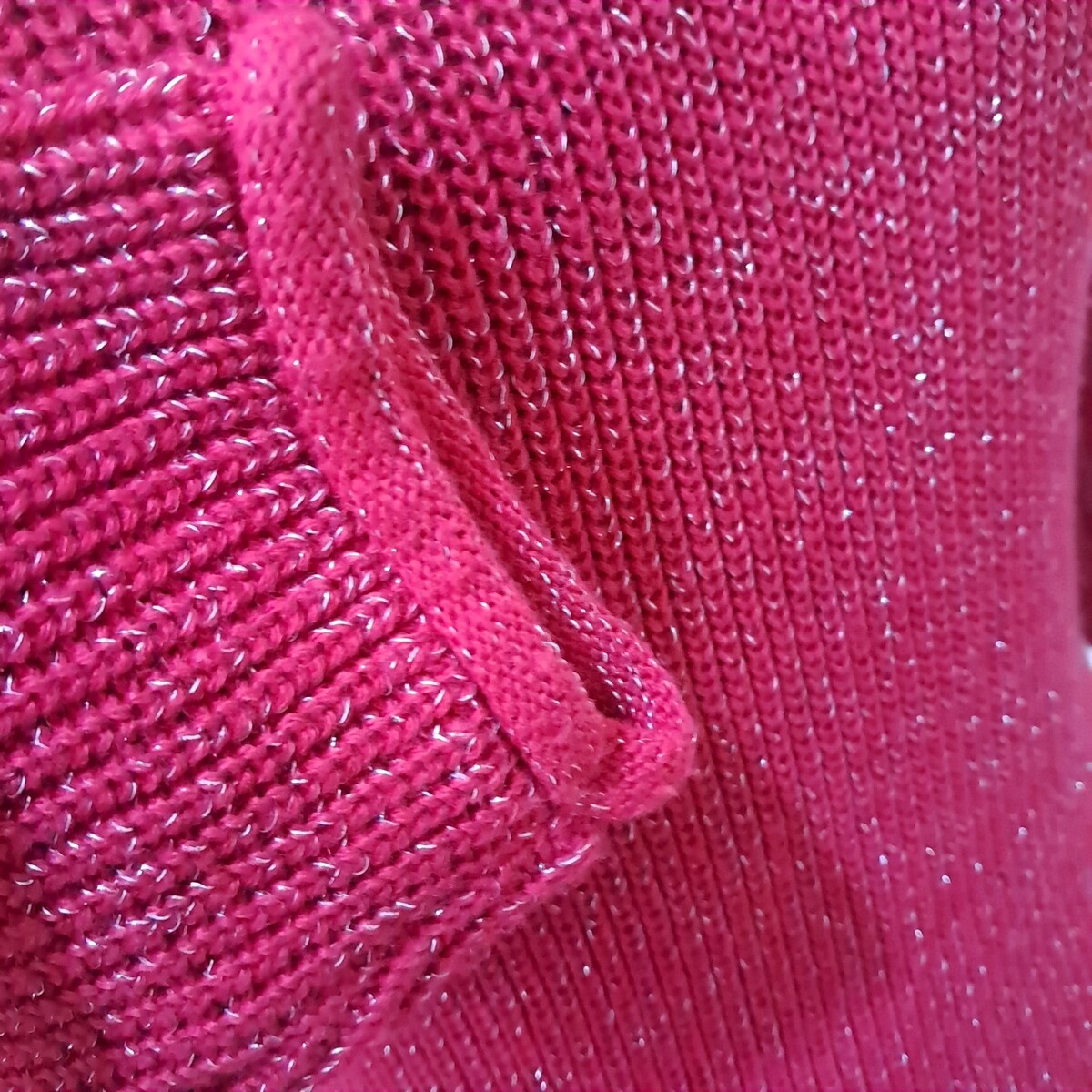 Knit sweater dress. Pink with silver sparkle. Body con style.