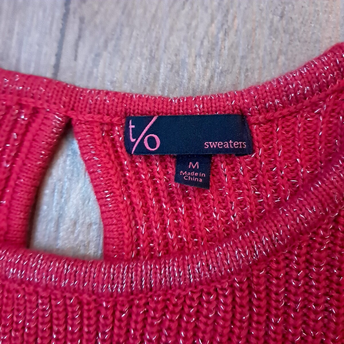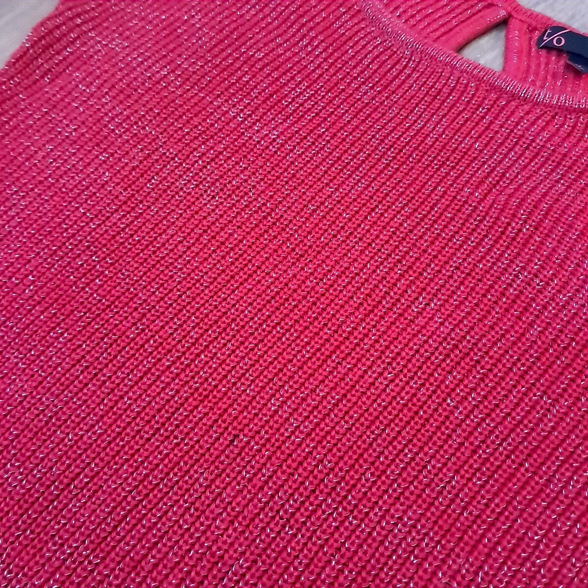 - T/O Sweater Dress Womens sz Medium Pink Ribbed Knit Keyhole Stretch sparkle Y2K