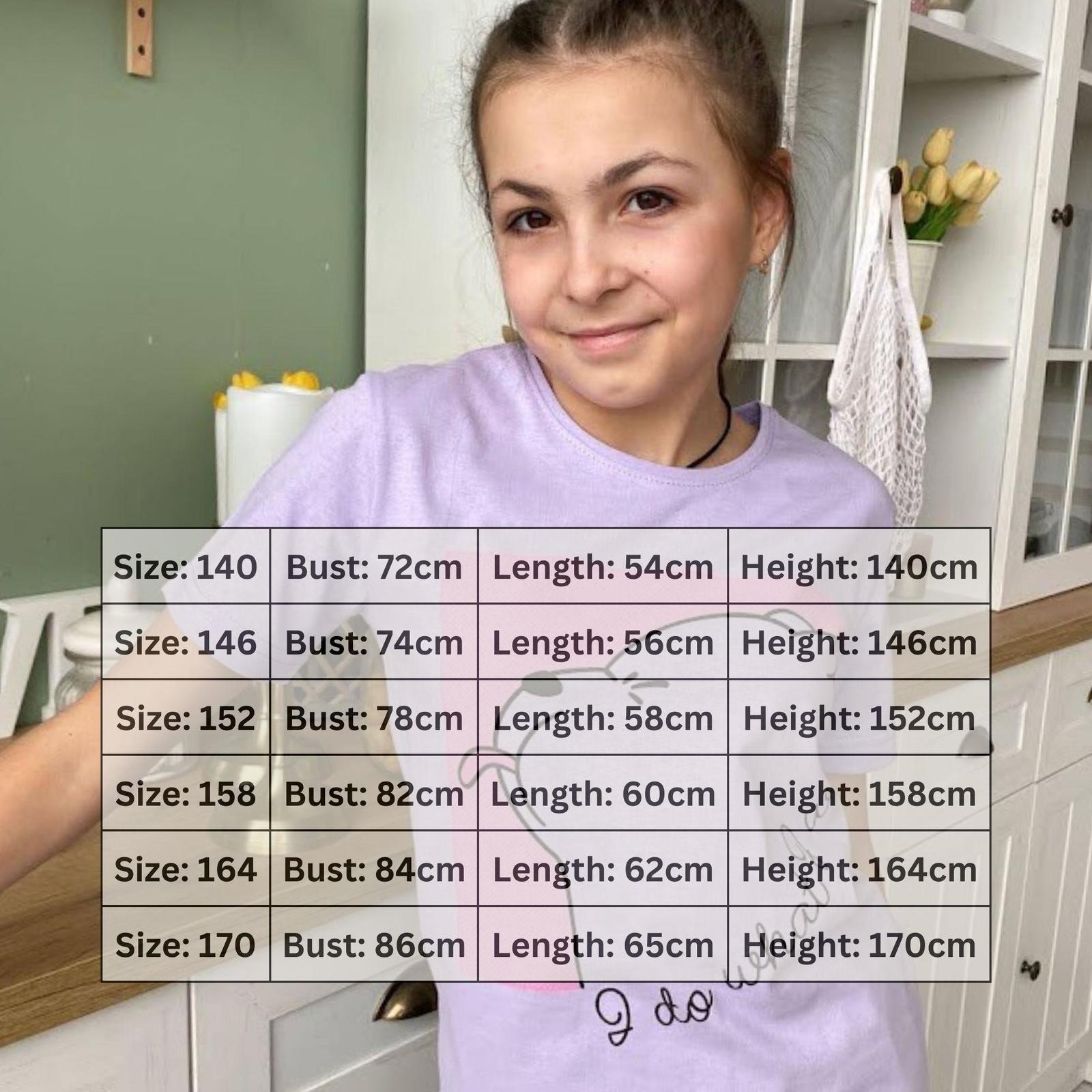 Fashionable children's teen T -shirt is the perfect choice for a stylish girl. Made of quality materials, it guarantees comfort and sophistication. Bright design and unique drawing make it unsurpassed. This T -shirt will create a unique image for a teenager who likes to express his personality. Add the style and originality to the image of your young fashionista. Make purchases reasonably - with high quality and fashionable things from us!