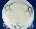 - T&V Limoges France Demitasse Saucer Hand Painted Pink Roses Blue Rim